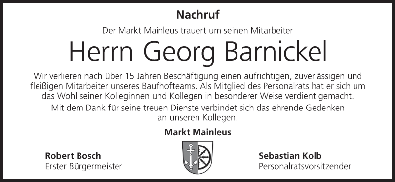 Hier finden Sie alle Traueranzeigen aus der Zeitung, die bisher für Georg Barnickel erschienen sind. Weitere Traueranzeigen, die in der Zeitung erscheinen, werden hier ebenfalls aufgelistet
