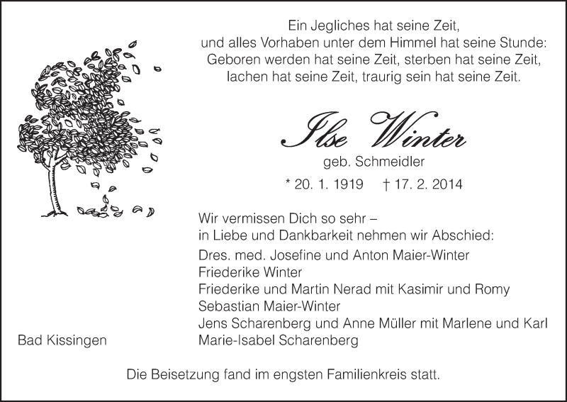 Hier finden Sie alle Traueranzeigen aus der Zeitung, die bisher für Ilse Winter erschienen sind. Weitere Traueranzeigen, die in der Zeitung erscheinen, werden hier ebenfalls aufgelistet