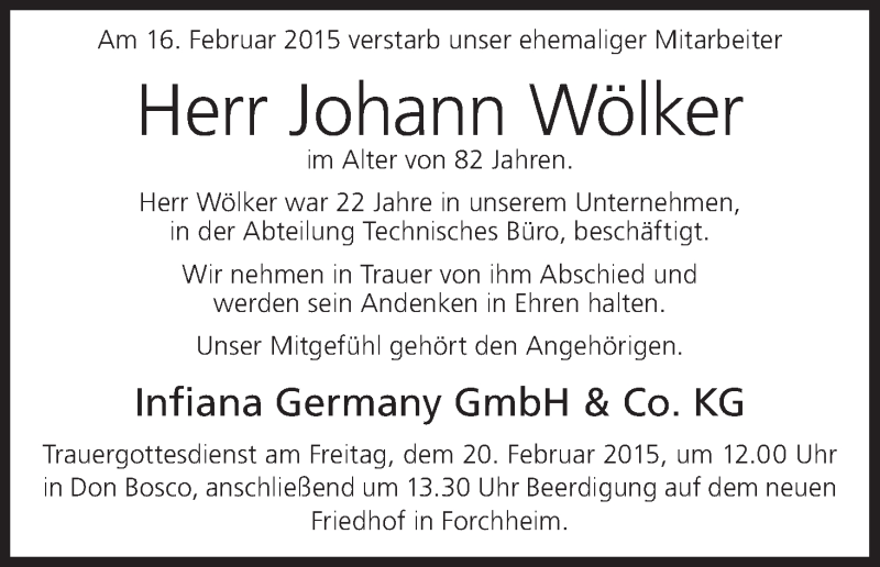 Hier finden Sie alle Traueranzeigen aus der Zeitung, die bisher für Johann Wölker erschienen sind. Weitere Traueranzeigen, die in der Zeitung erscheinen, werden hier ebenfalls aufgelistet