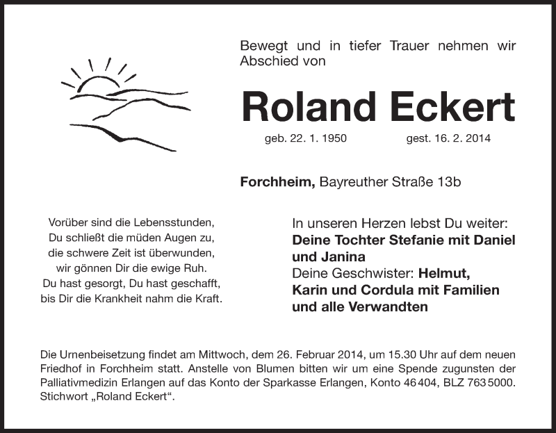 Hier finden Sie alle Traueranzeigen aus der Zeitung, die bisher für Roland Eckert erschienen sind. Weitere Traueranzeigen, die in der Zeitung erscheinen, werden hier ebenfalls aufgelistet