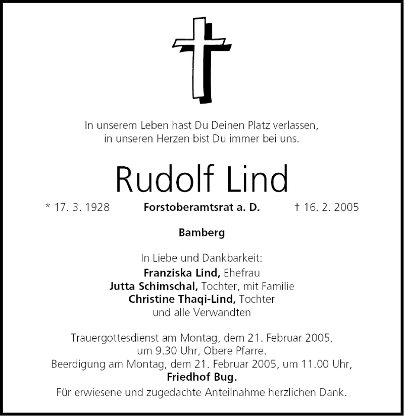 Hier finden Sie alle Traueranzeigen aus der Zeitung, die bisher für Rudolf Lind erschienen sind. Weitere Traueranzeigen, die in der Zeitung erscheinen, werden hier ebenfalls aufgelistet