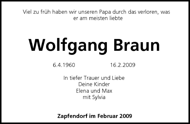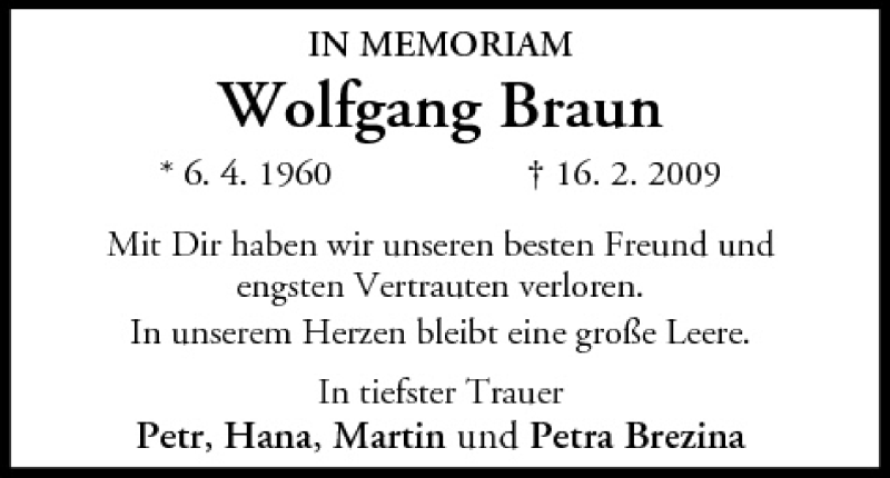 Hier finden Sie alle Traueranzeigen aus der Zeitung, die bisher für Wolfgang Braun erschienen sind. Weitere Traueranzeigen, die in der Zeitung erscheinen, werden hier ebenfalls aufgelistet
